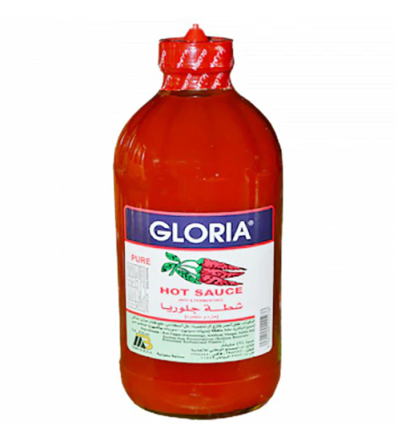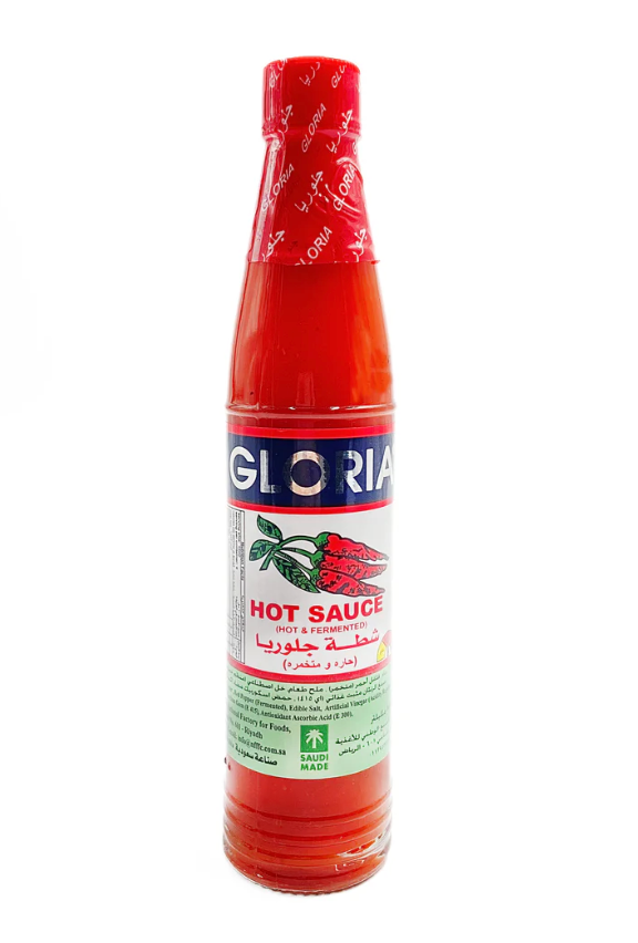 Gloria Hot Sauce is a mix of aged pepper and vinegar plus other ingredients to achieve the magnificent taste of Gloria Hot sauce known as a good enhancer to many meals and for its marvelous red color, its also the favorite to many consumers and widely popular in the Middle East.