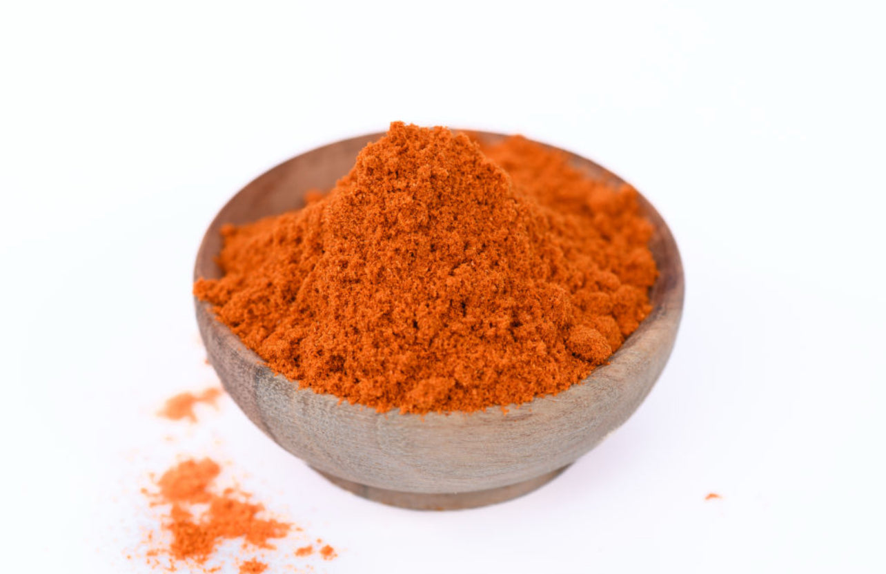 • Made from ground red peppers. Sweet or smoky flavor, meats, and rice