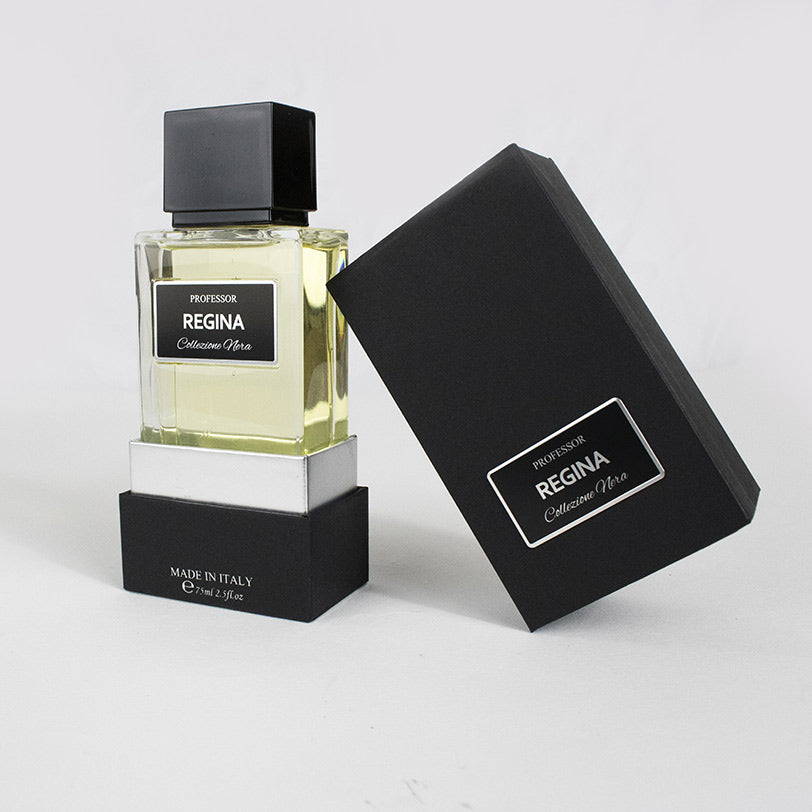 REGINA è una fragranza elegante, con accordi floreali su cui spiccano la rosa, il mughetto e la peonia.